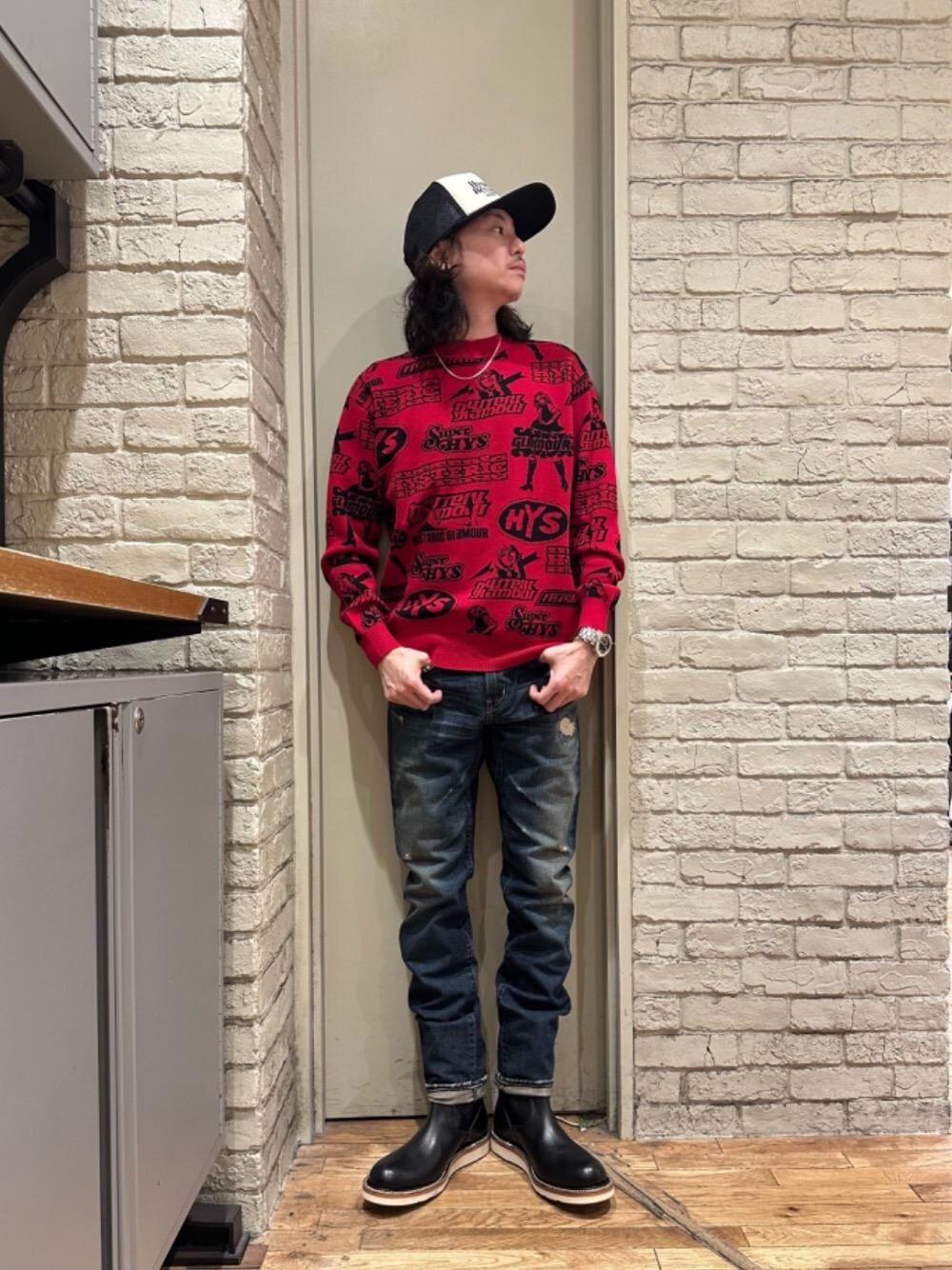 Mitsu(HYSTERIC GLAMOUR横浜ジョイナス店)のデニムパンツ「RW CLASH加工デニムスリムストレートパンツ」を使ったコーディネート