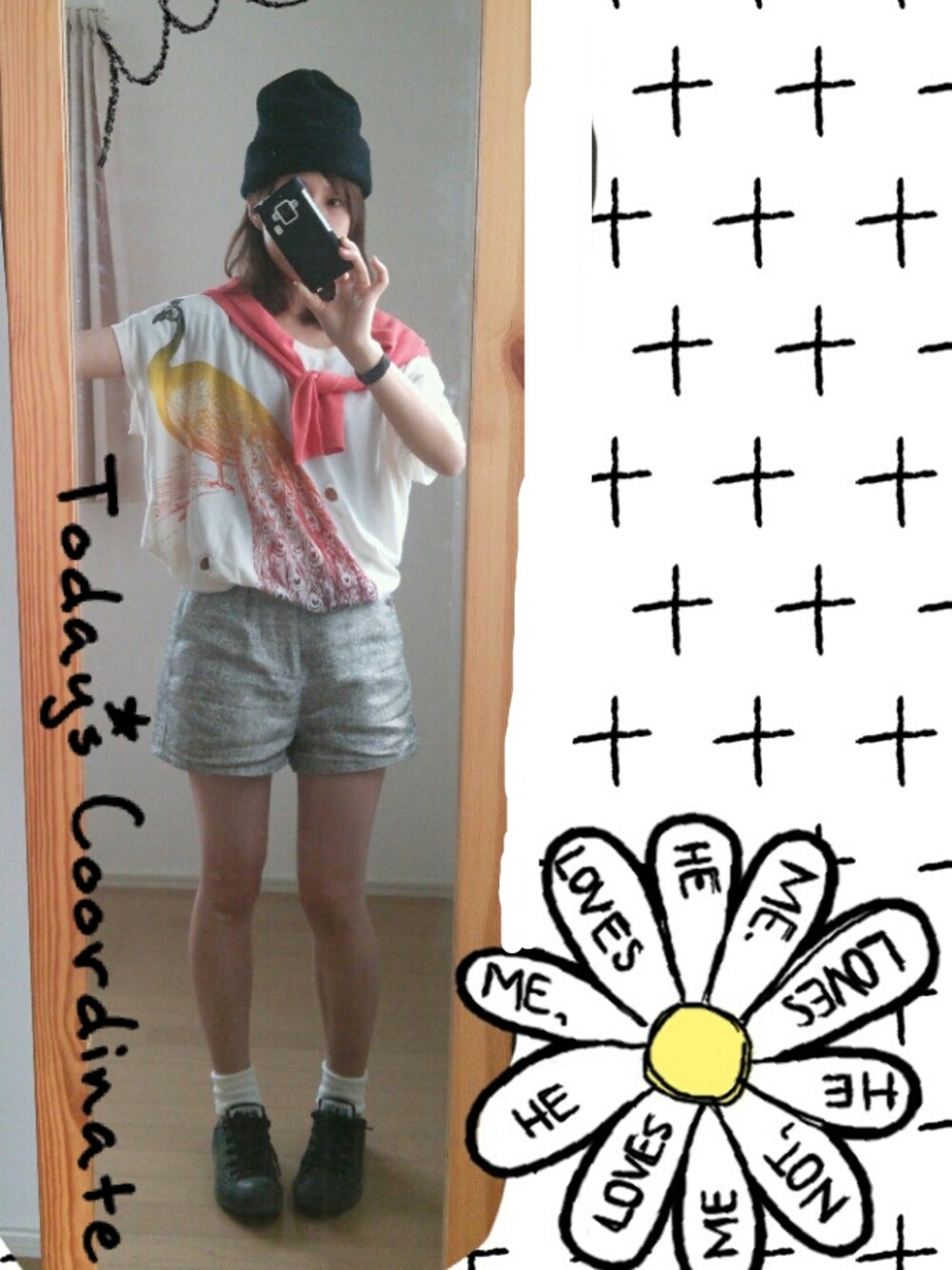 トップス : johnbull パンツ : KBF 靴下 : 靴下屋 ジョンブルのTシャツは形が好き~ 何年か前のデザインだけど、プリントも気に入っててよく着てます!!