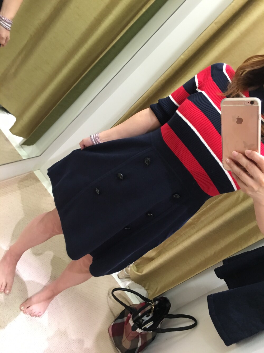 レトロ感漂う60年代ワンピ ボーダーがおっきくてかわいい♡ 赤色か黄色で悩みちゅう(笑´・艸・)
