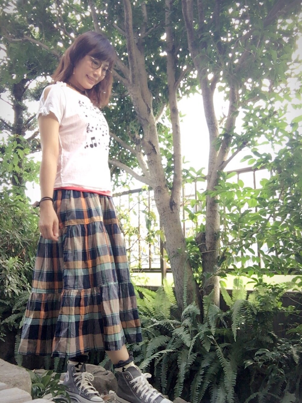 仕事終わって、着替えて出かけます。 暑かったのと、足がむくんでるので、風通しの良いロングスカートが良いですね〜( ^ω^ ) シーバイクロエのTシャツは、生地が柔らかくて気持ちいいんです。 肩の開きもこのくらいならこの歳でも大丈夫かな(笑)