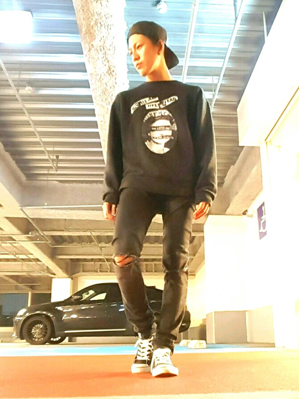テーマ 「真っ黒くろすけ」 いつもはするレイヤードや、腰巻き、アクセ、バンダナをはぶいたシンプルスタイル(^^)