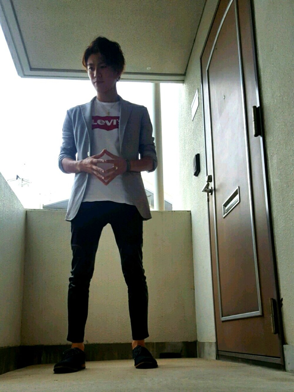 リーバイスのTシャツですこしはずした きれいめなこーで✨ ジャケットひさびさ😏 台風いなくなれ。。。(泣)