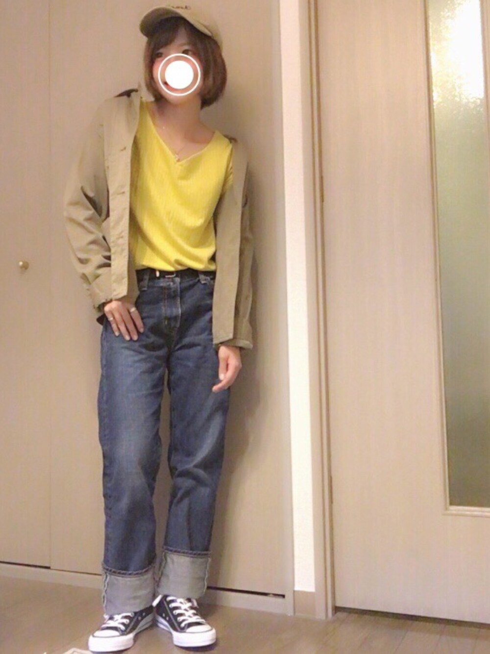 こんばんは🌙*.。 ご覧頂きありがとうございます🙈 今日は、涼しかったので長袖を はおりました( ˆoˆ )/ 実際はもっと腕まくってました( ˆoˆ )/笑 Tシャツは、大好きなインスタグラマーさんのフリマで手に入れたもの💕 鮮やかな黄色が可愛すぎてすぐ着た💕 黒コンバースも仲間入り💕 激激可愛いカーディガン買ったからはやく着たいなーーーー😳 よかったら、いいね、お気に入り、フォローお願いします🙇🙇🙇