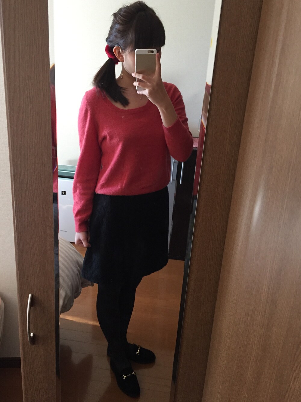 ネックレスを着けたくて、よくみえるように デコルテ広めニットに♥ レーススカートで大人っぽく。 靴はペリーニ!だけど痛くてチェンジ!(・∀・)