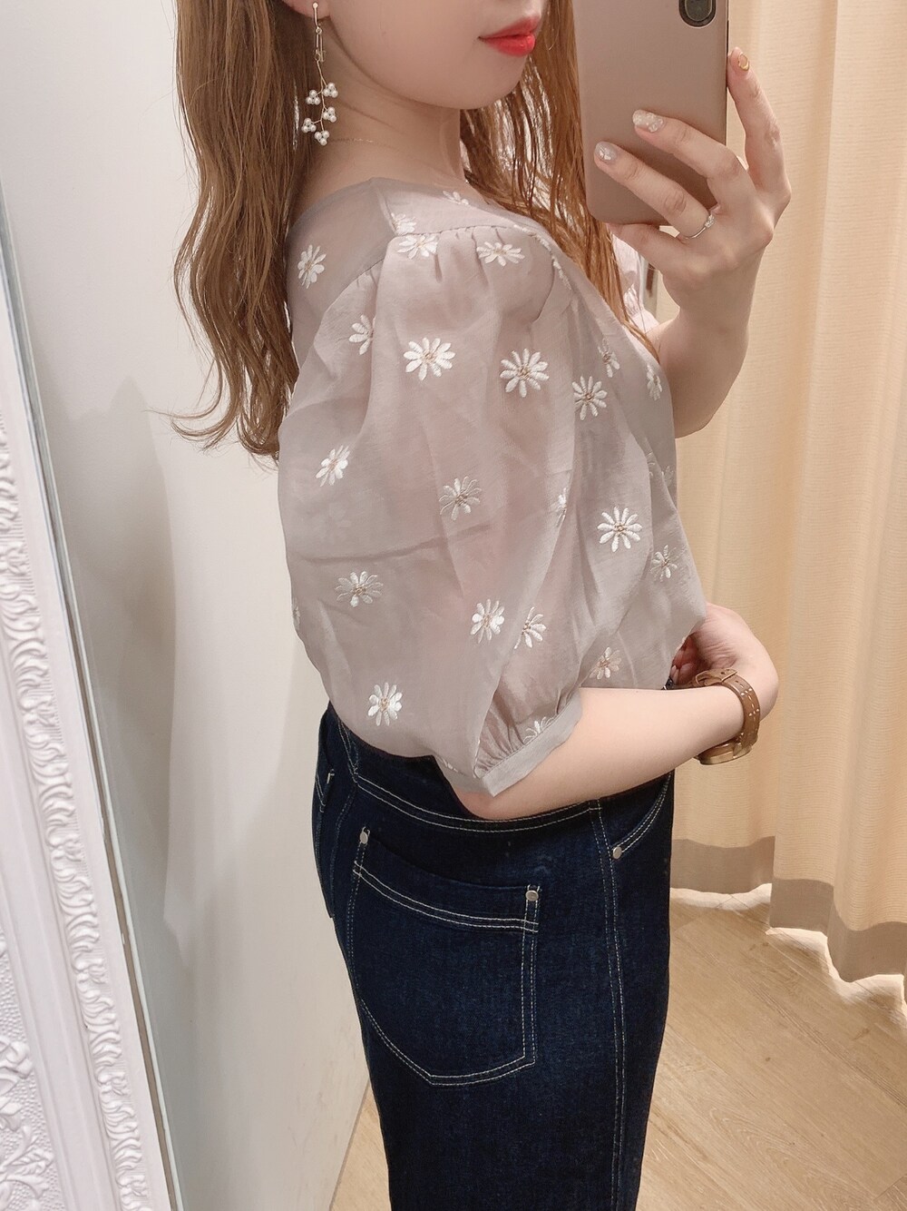 かなみ(natural couture)のシャツ/ブラウス「【WEB限定カラー有り】シアーマーガレット刺繍インナー付きブラウス」を使ったコーディネート