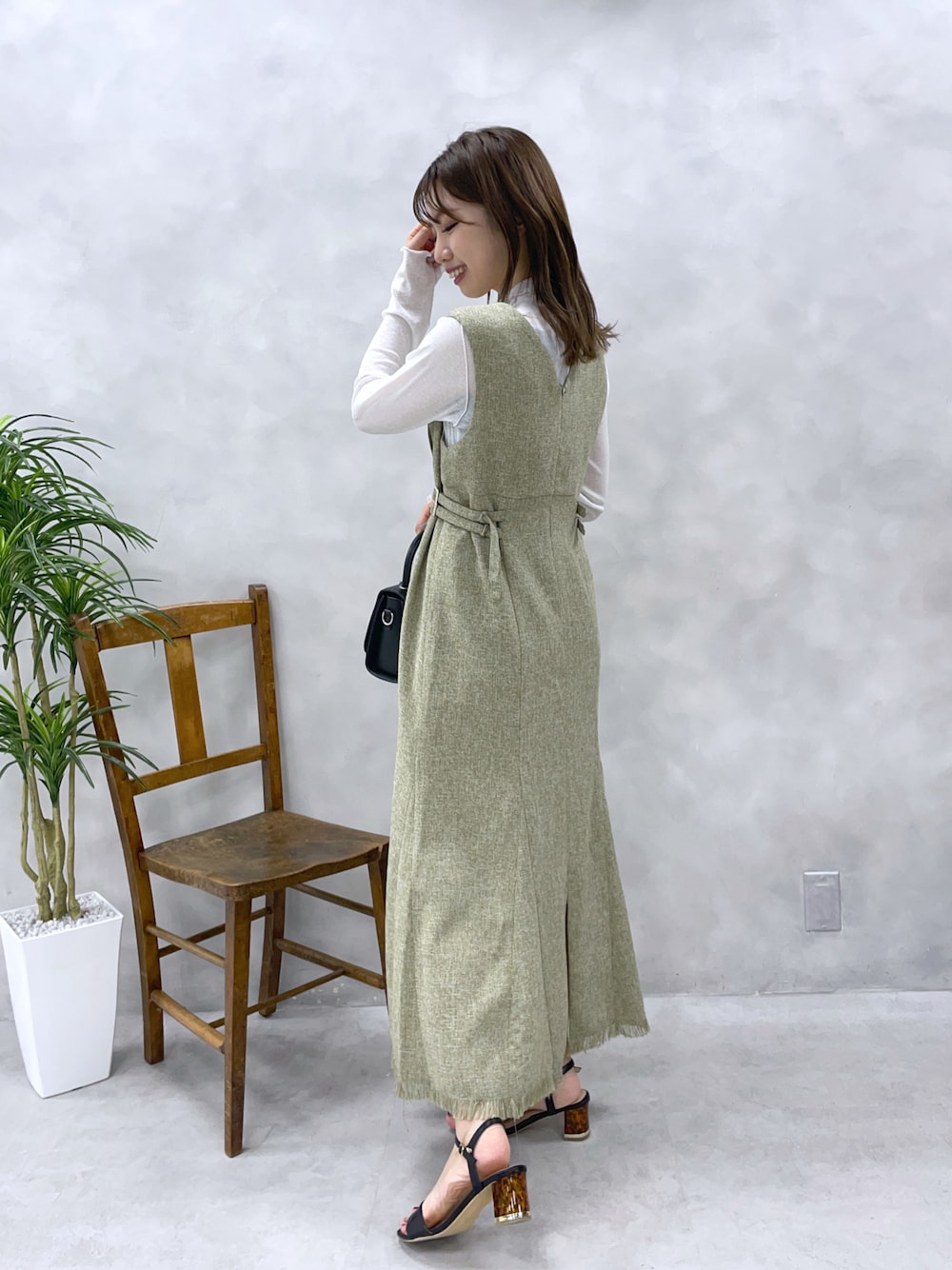 スタイルアップ可能な、トレンドのツイードのジャンスカ♡ サイドベルトは片側で10cm調整可能で、好みのシルエットで調整できるのが嬉しい♩