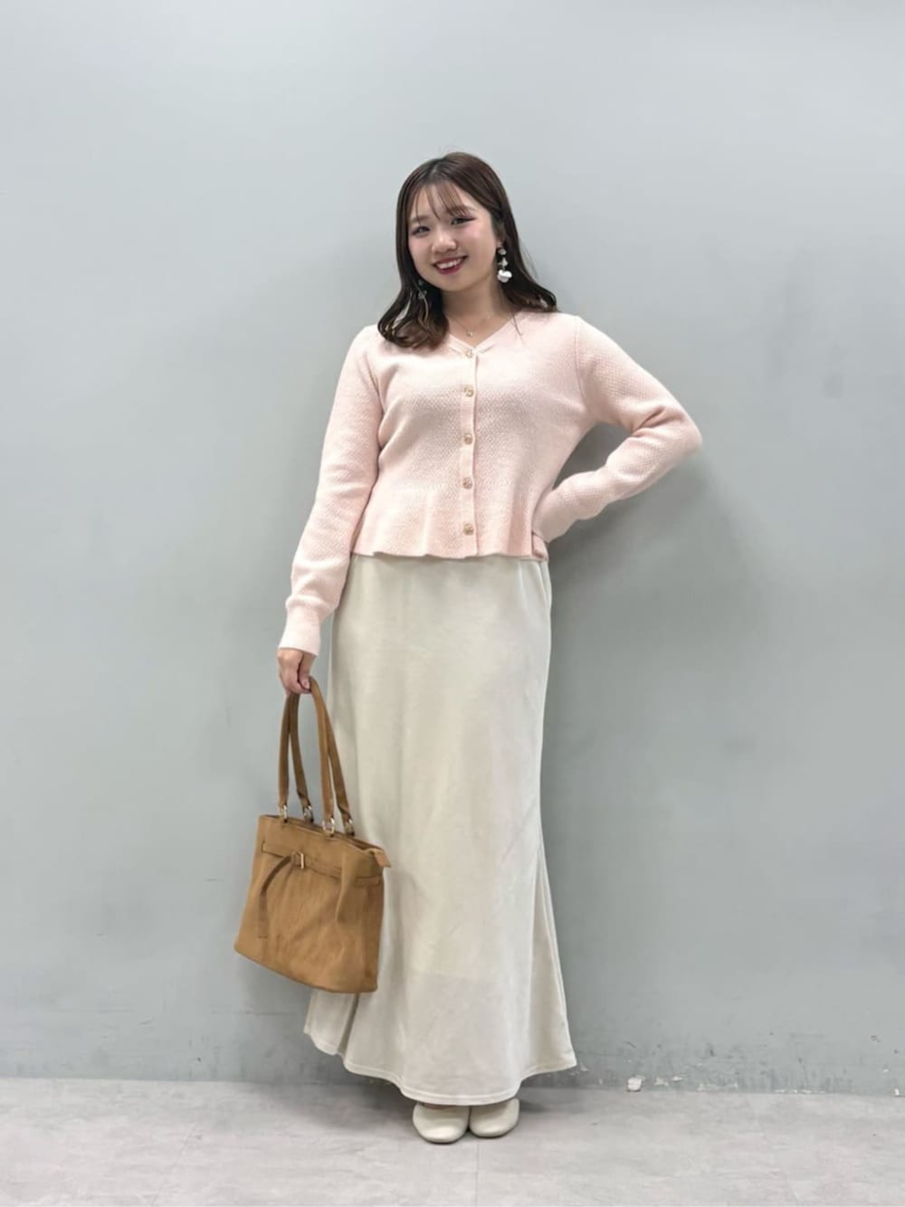 【156cm 骨格ストレート(クラシック) 1stブルベ夏 2ndブルベ冬】 *上半身:肩幅広め(フレームしっかり)、胸位置高め *下半身:腰位置高め、骨盤広め、ヒップ大きめ *足サイズ:24〜24.5cm *instagram : @canami__n ●ニット ほんのり控えめラメがとっだっても可愛い!!!♡♡ Vネック×ペプラムで着痩せ効果もしっかりあります。 合わせるボトムは、フレアよりもスッキリ見えるパンツやタイトスカート、マーメイドスカートがオススメです◎ ●スカート...L (リアルバイ item) Lはウエストが少し大きく感じるので、身長や体型が近い方はMサイズがオススメ。 普段ヒールを履くのとロング丈が着痩せして見えて好きなのでLサイズをリアルバイしています◎