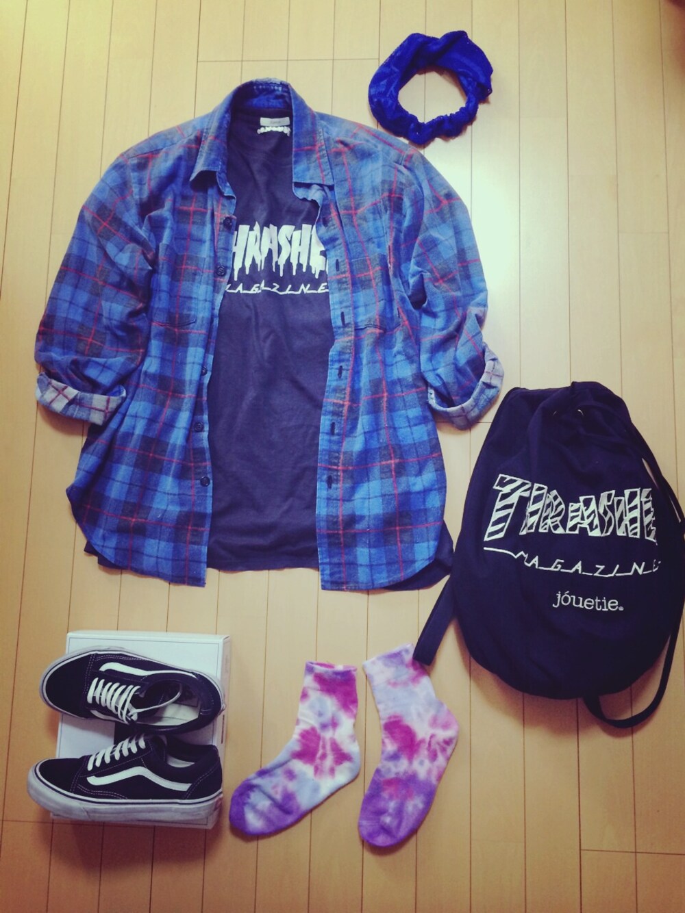THRASHERづくし。 ネルシャツは古着のためボロボロです。泣