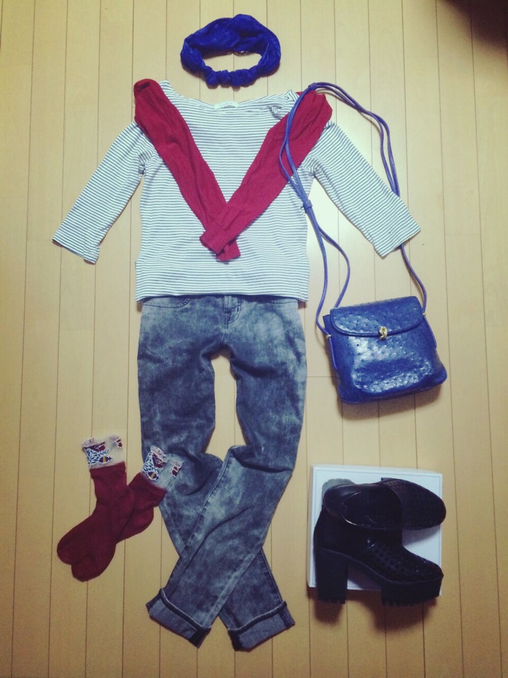 スキニーデニムその2! 考えてたら2パターンになりました。笑 その1より ちょいと大人めです✡ バッグはオーストリッチ☻ 祖母からのおさがりです☻