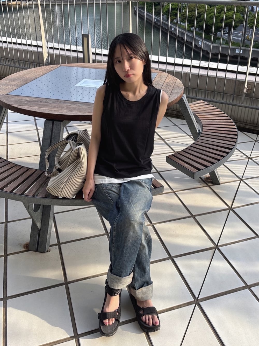 UNIQLO✖︎ANYAのタンクトップに 白のタンクトップを重ね着した🤍 レイヤードすることで、 こなれ感が出るからオススメ❣️
