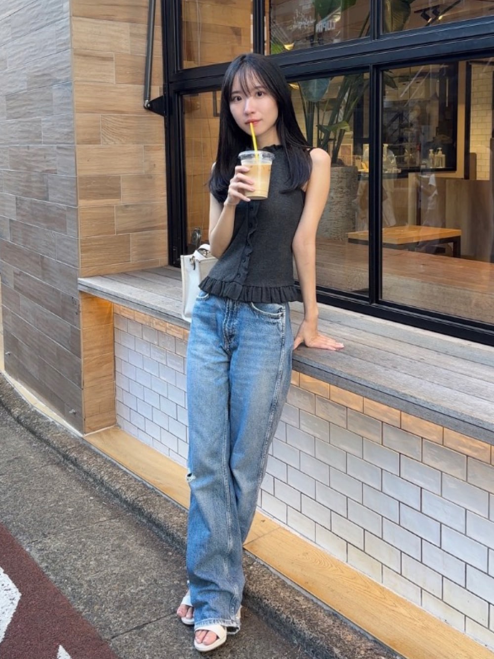 お気に入りのZARAトップス🌻 夏のデニムコーデって可愛いよね〜‼️ UNIQLOのサングラスおすすめ🕶️