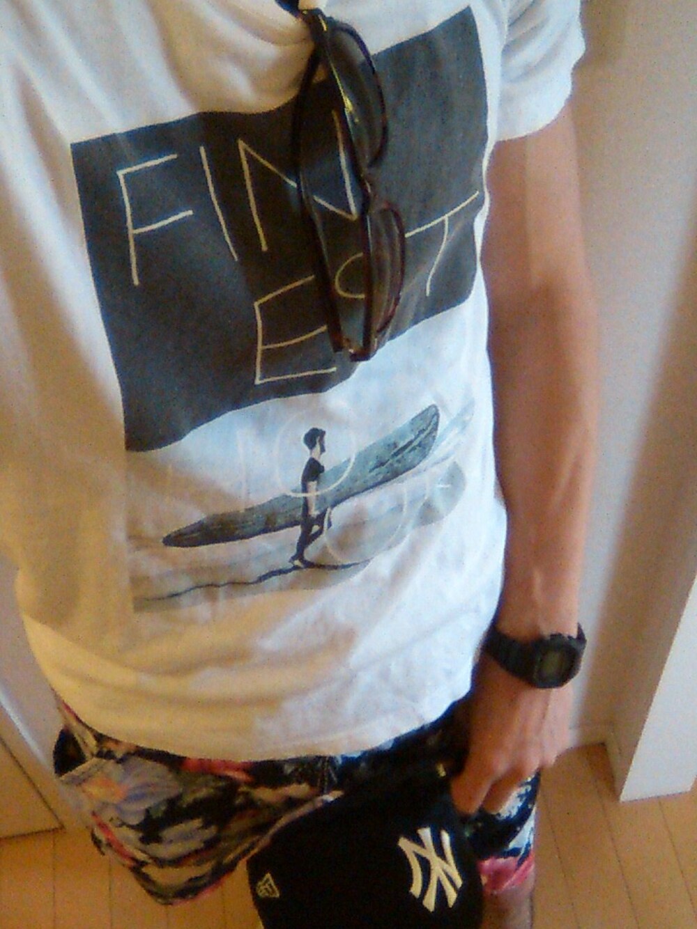 天気いいから、 Tシャツに短パンからのー白のキャンバススニーカーで涼しく。 ベースボールキャップ&サングラス装備で 暑さ対策♪
