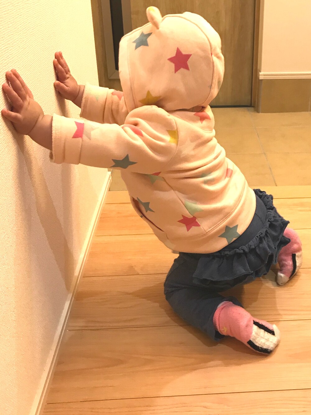 クマさんシリーズその2 パーカーにもクマ耳がついてたので、 これはフード被らすしかない!と思い被らせてみました。 可愛い♡ 中がボアで暖かく、ロンTと合わせて着てました。