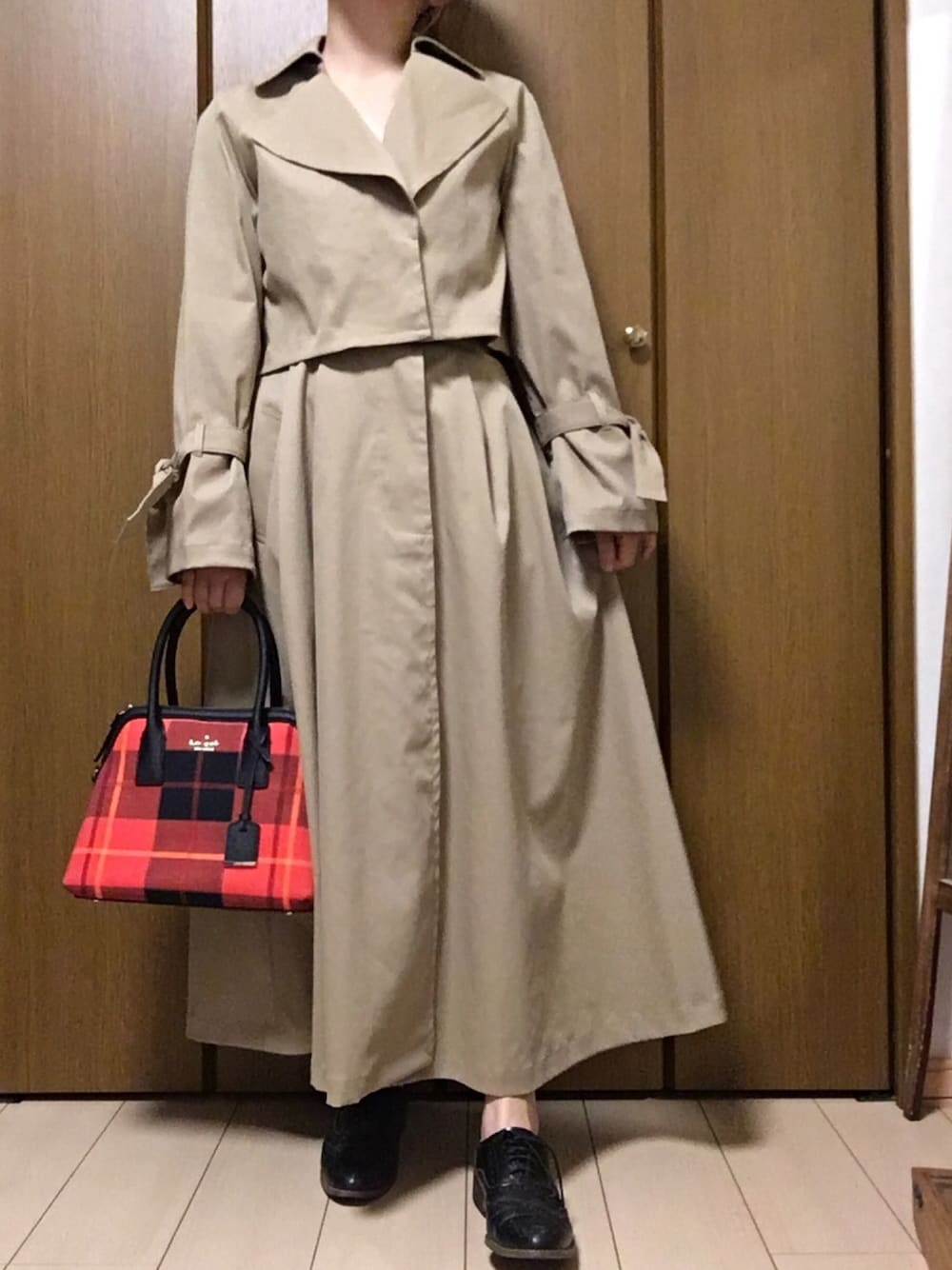トレンチ前を閉めてワンピースっぽく👗💕 毎日雨続きで憂鬱…😭早く晴れないかな〜☔️