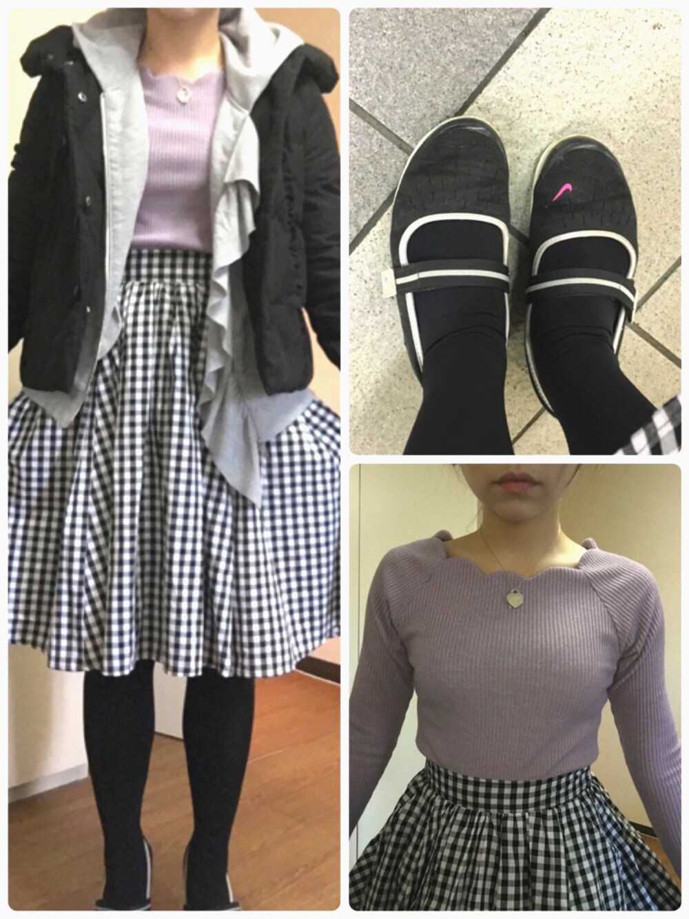 fintのトップス、首元がスカラップになっててかわいい!色違いも欲しい🐰 歩く日だったので、nikeのスニーカーでカジュアルに🐰🐰