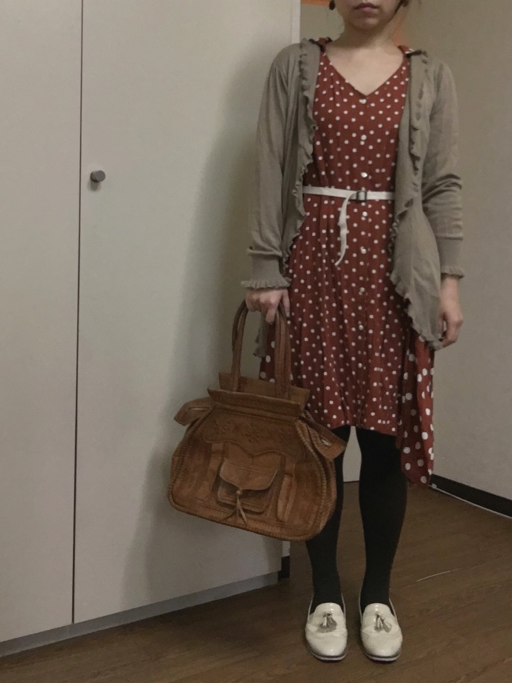 秋を感じさせるコーデになってしまった🍎🍠🍁 寒いのでまたムートン大活躍です