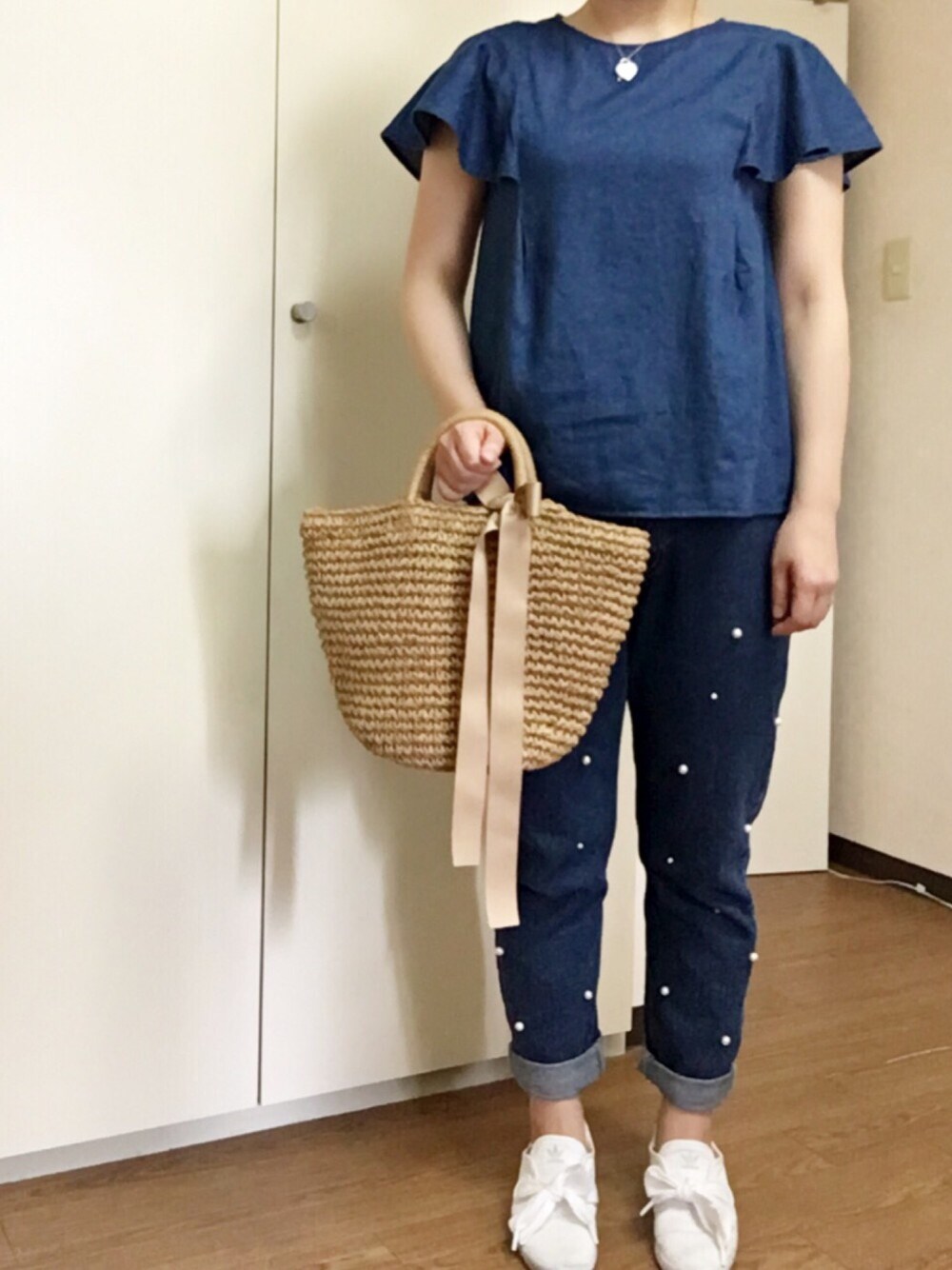 アップして編集しようとしたらなぜか削除されてしまった…😱 今日はデニムオンデニムコーデに挑戦してみました😙 上下微妙に色違うけど、 着てみると案外気にならなかった笑 ひらひらトップスはローリーズ、 ボトムはdholicのパール付きデニムです🐧✨ 赤いサンダルに合わせるのと迷って 結局、adidasの白スニーカーにしてみました👟