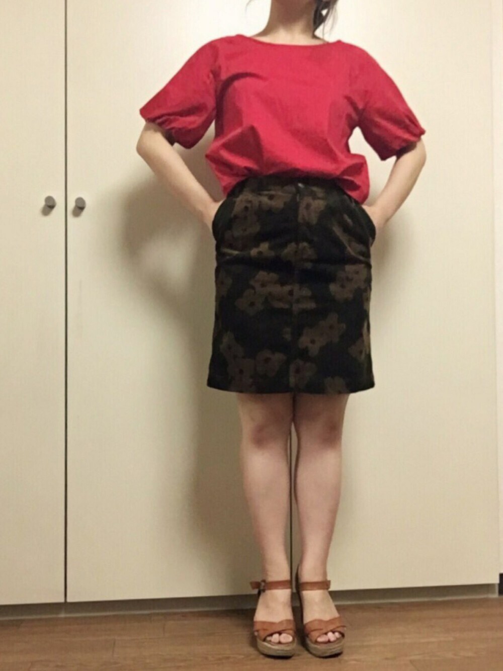 赤×迷彩柄って意外とあわせやすい❤️🌿 この迷彩、よーく見ると… お花のカタチになってるんです😚 バックにはMUVEIL定番のおリボンが🎀✨ けっこうタイトで、ずっとはけなかったのですが 痩せてやっとはいるようになったー😭 でもまだまだ油断はできない! ちょっと食べ過ぎたら息できません…☠️ コーデュロイ素材なので、 これから冬にかけてたくさん履けるように ダイエット引き続きがんばろう〜!