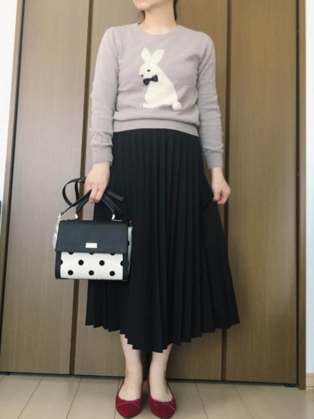 ひさびさにUNIQLO行ってきました〜❣️ 合わせやすそうと思って、 黒のプリーツのスカートを買ってみました✨ そして去年も気に入って着ていた うさちゃんニット🐰🐰 しっぽが立体的になっています🐰