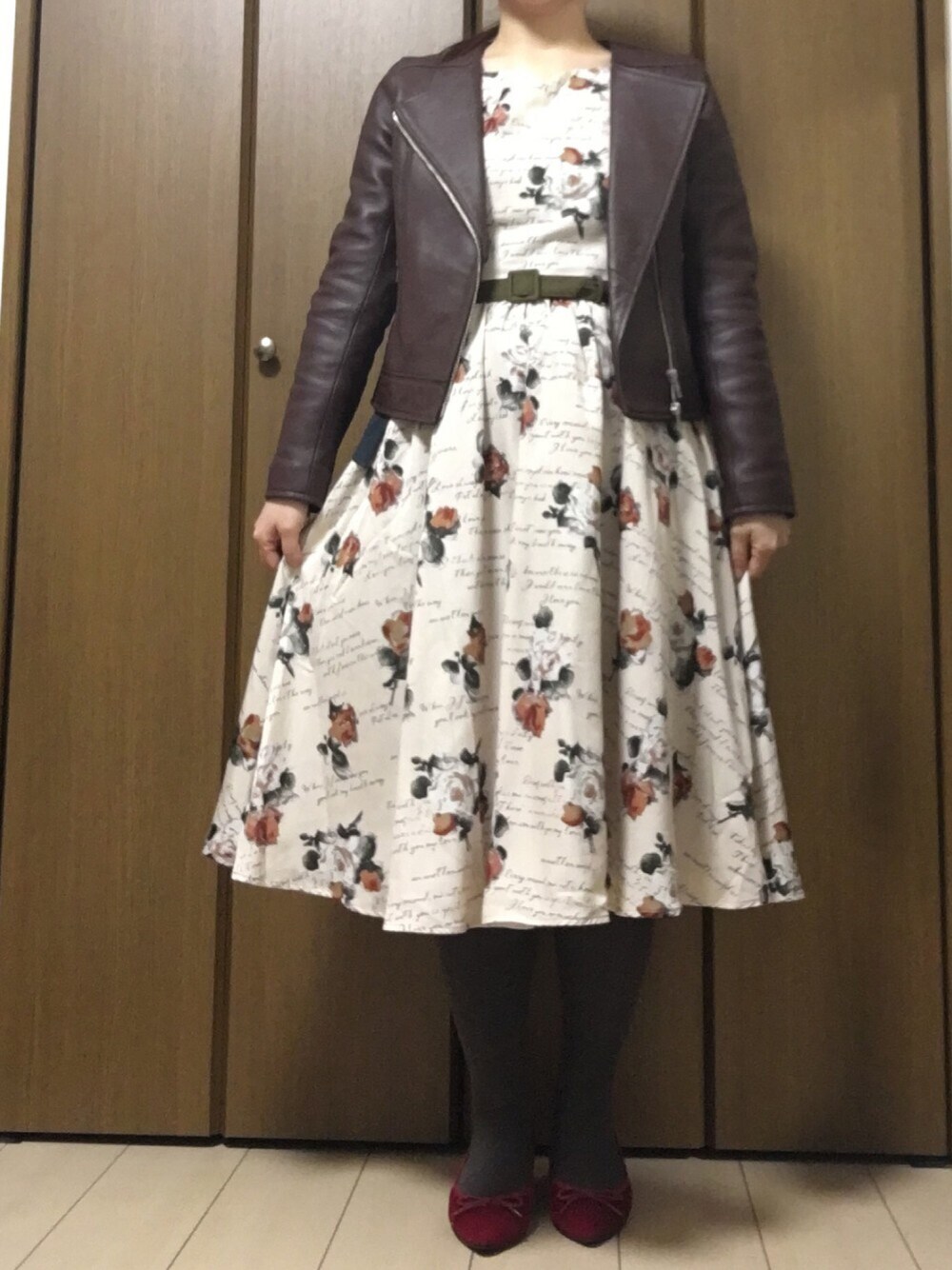 ライダース×ワンピ❤️ でもこれじゃもう夜は寒いな😵