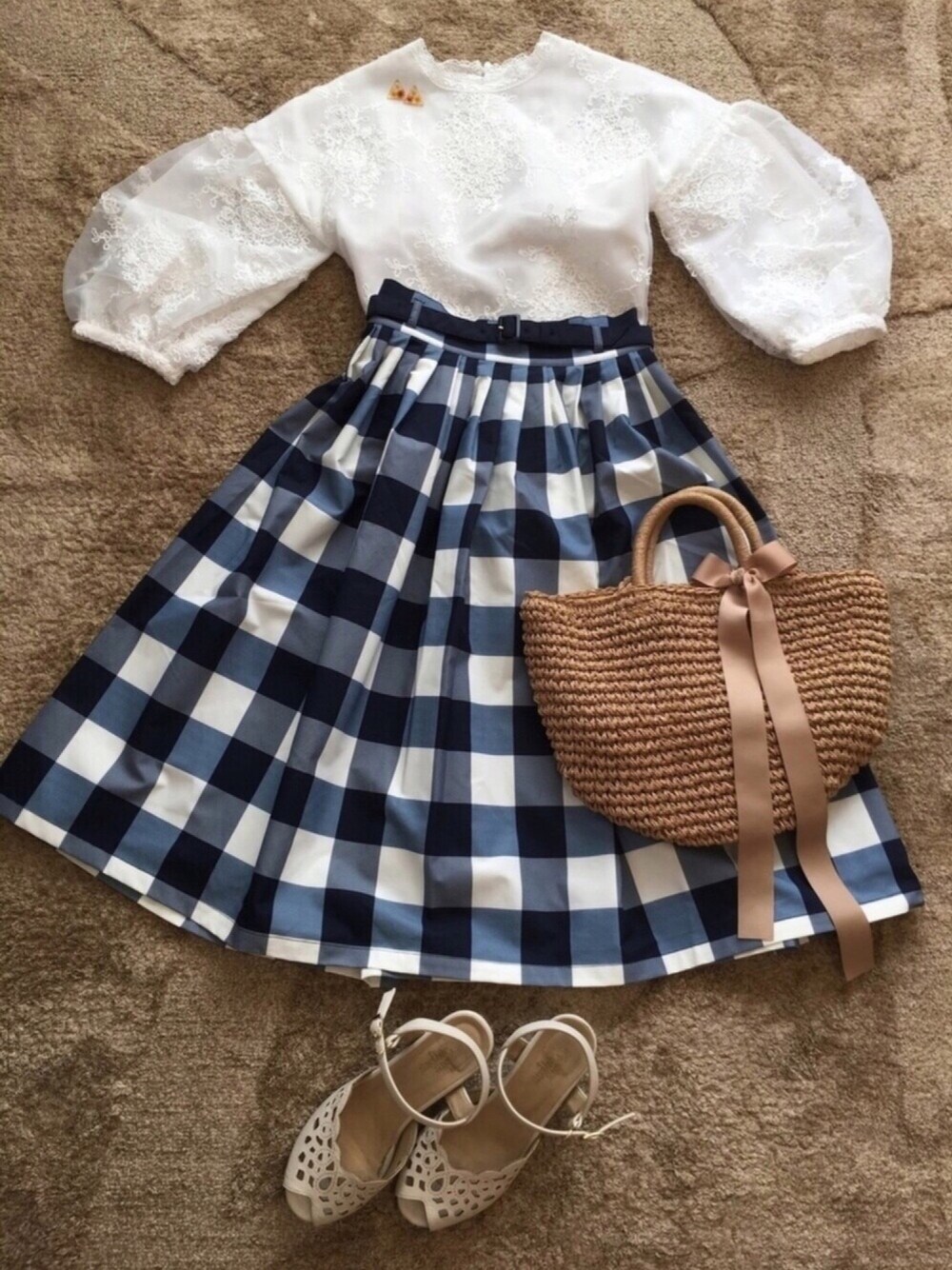 やっぱりトップスinのスタイルが好き❤ 今は着られないけど、どーしても欲しくて買ってしまったスカート💦その1❣️ (その2は後日アップ予定…笑) 色違いの白×黒と迷ったけど、白×ネイビーって珍しいなぁ〜と思ってこっちにしてみました💕 ギンガムチェックが大きめなところもかわいい😆 次は赤い小物やブラウスに合わせてフレンチ?マリン?な感じにしてみたいな🇫🇷 産後ダイエット頑張って夏には着られるようになりたい〜❣️