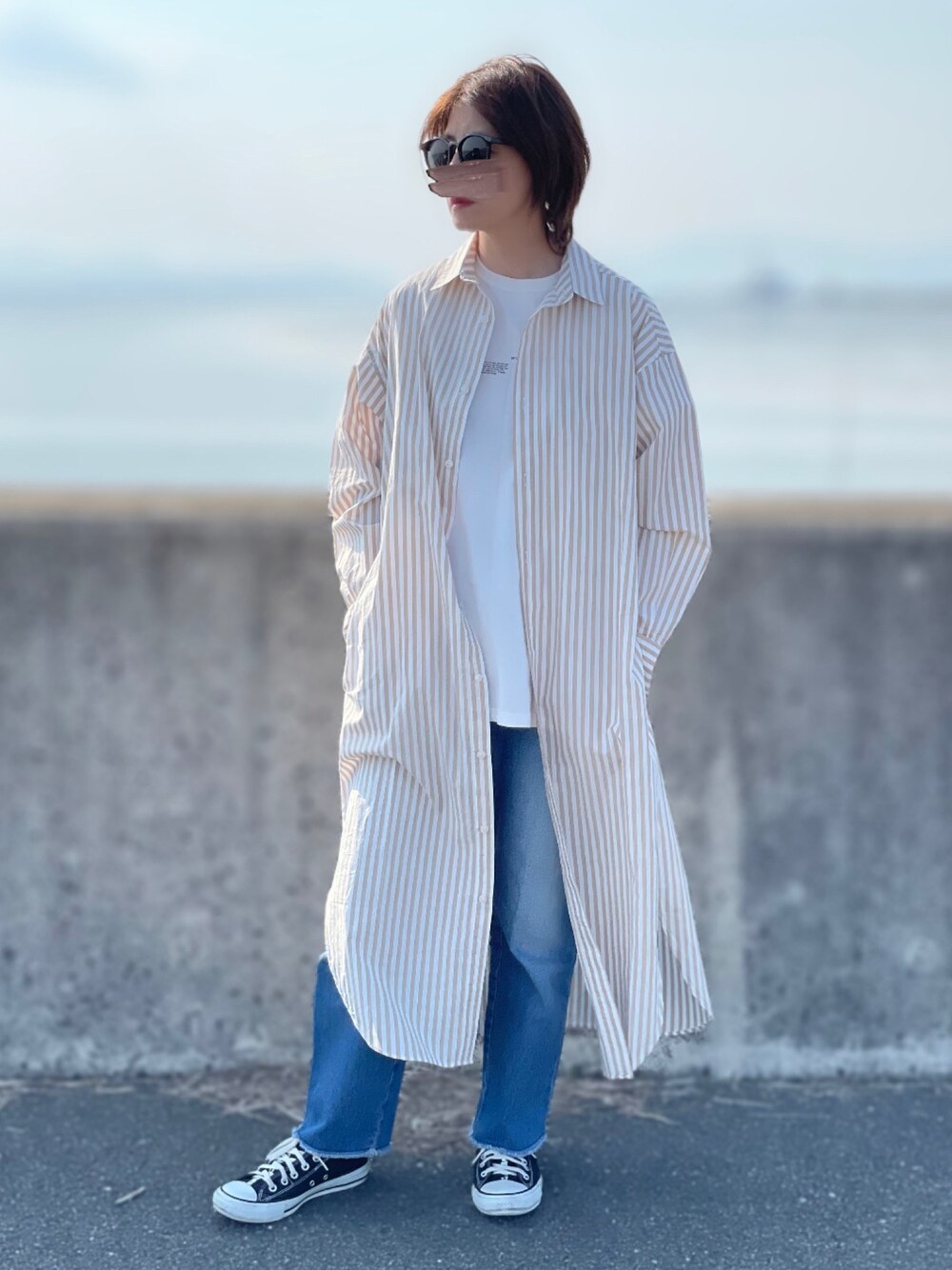 ご覧いただきありがとうございます😊 シャツワンピ✨ ワンピース→ FORK&SPOON Tシャツ→ kutir パンツ→M nort スニーカー→converse