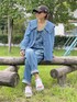 𝑴𝒂のシャツ/ブラウス「SOMETHING/サムシング フリルビッグカラーデニムブラウス」を使ったコーディネート