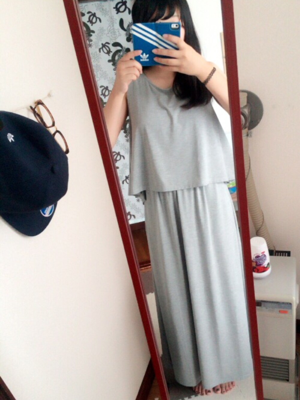 温泉行ってきました^ 後ろが切れていて背中が少し見えるので中にショート丈のキャミソールをきています