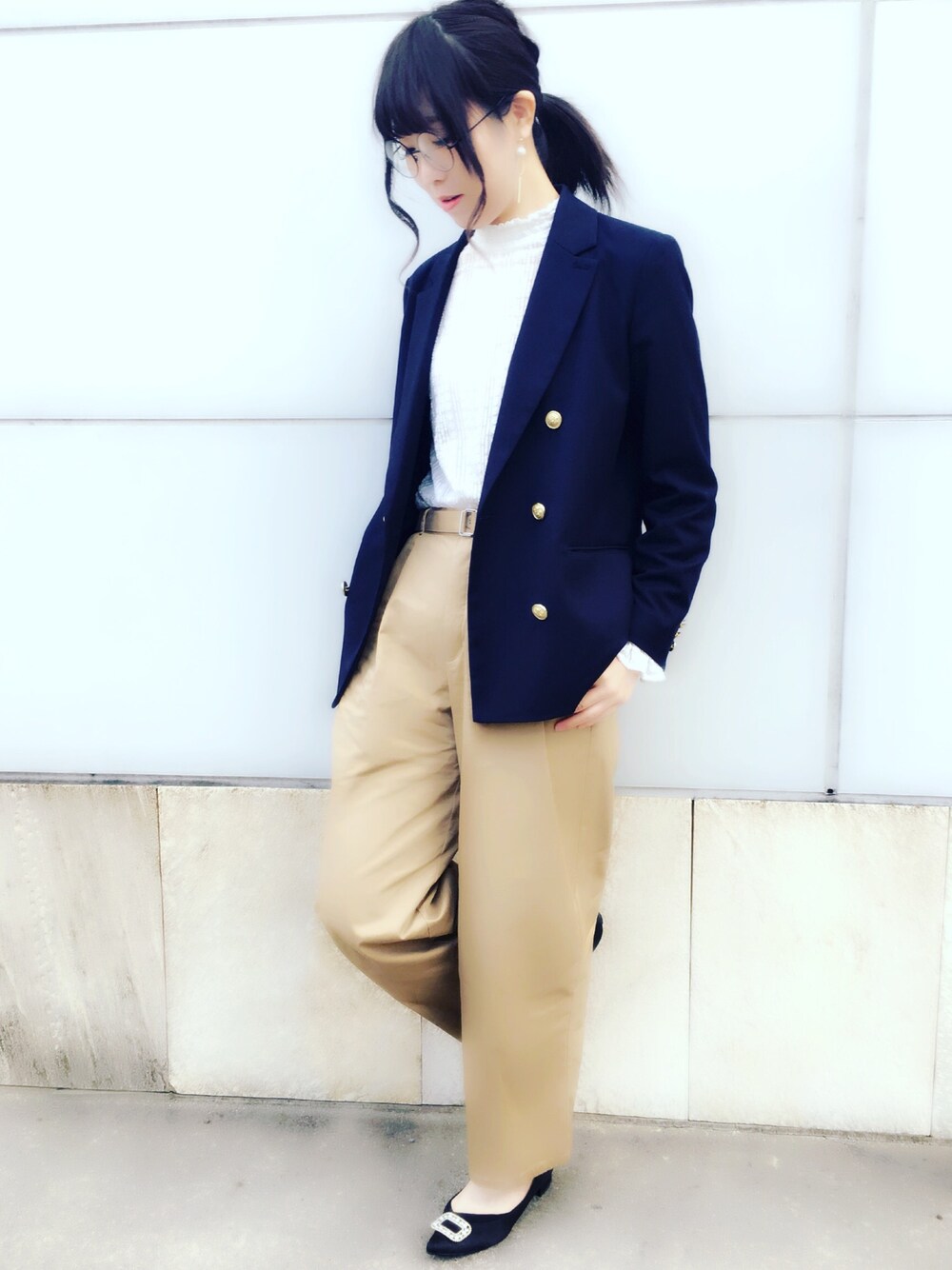 ダブルブレストジャケットをトレンドのチノワイドパンツと合わせてマニッシュコーデに☺︎