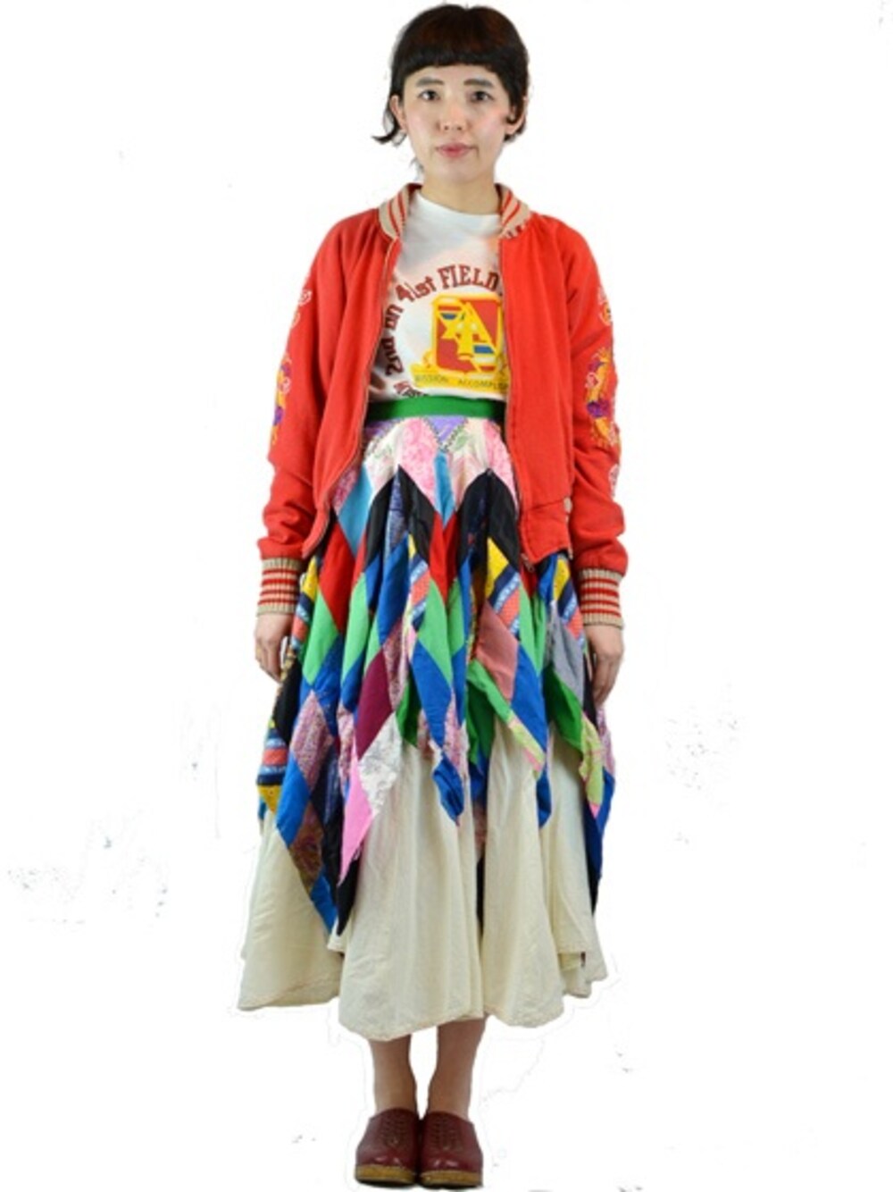 スーベニア風刺繍ジャケット×70'sパッチワークスカート
