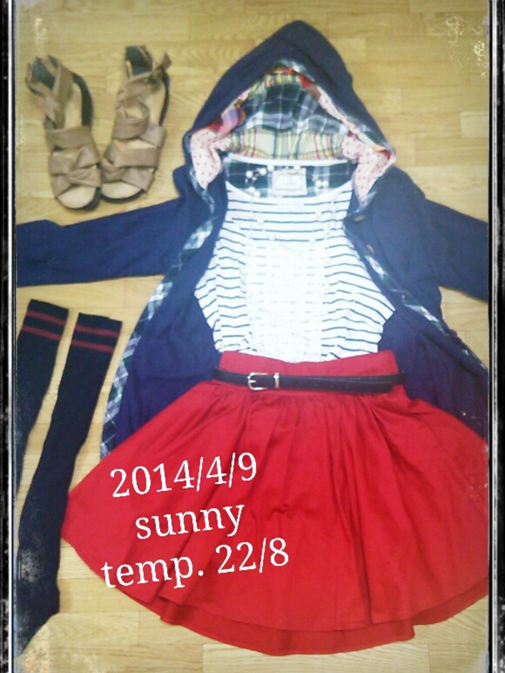 紺×赤 サーキュラースカートで乙女に❤(ӦvӦ。)