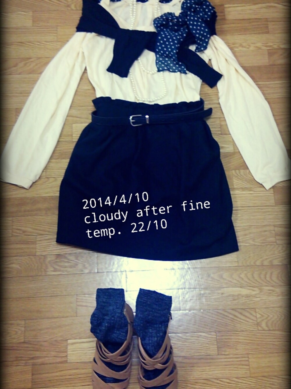 パステルイエローのカットソーをブラックのスカートで締めて甘すぎず❤(ӦvӦ。)