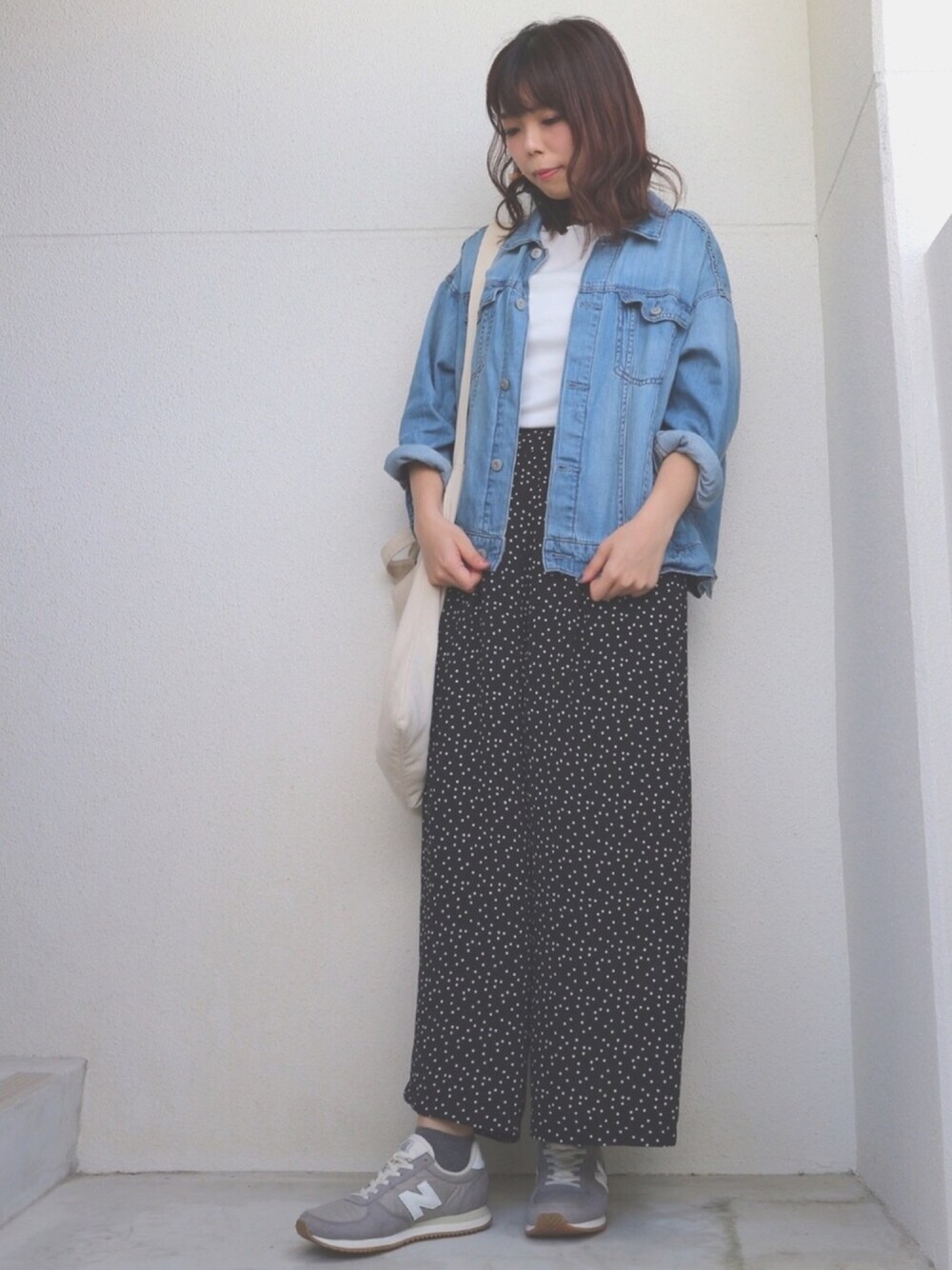 earth 春の新作コーデ🌸 定番のGジャンもBIGシルエットで トレンド感たっぷり!! そして今年のGジャンはなんといっても、 着心地抜群なんです!!! Gジャン特有のゴワゴワ感はなく、 軽くて柔らかい生地を使用しているので、 毎日でも着たいぐらいです🤤 お値段もお手頃なんです! インナーはメロウリブのトップスで、 こちらも着心地抜群! プチプラが嬉しい990円♩♩ ボトムスは今春トレンドの ドット柄でシンプルながらも ガーリー感をプラス🌷 足元も毎年大人気のスニーカー! earth別注のNewbalanceです。