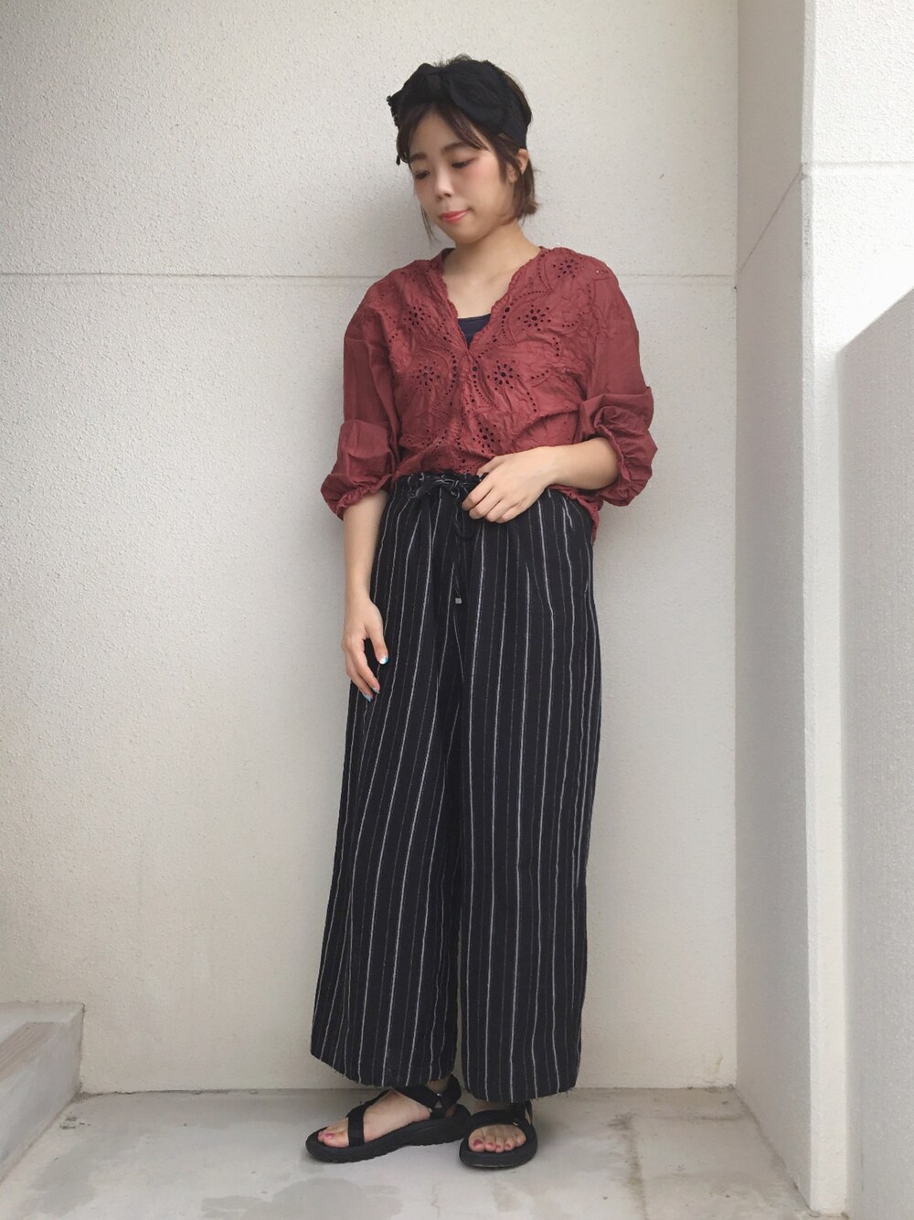 MIYAのシャツ/ブラウス「・Vネックスカラップ刺繍プルオーバー」を使ったコーディネート