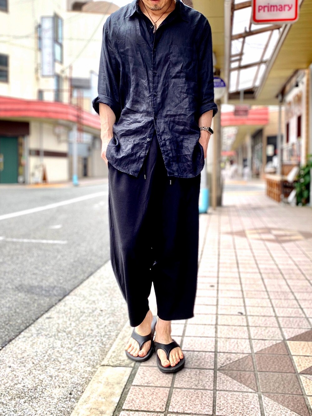 潔ぎよくオールブラック🎵 【CLOTHING】 Uniqloのプレミアムリネンシャツ(長袖)✨ SIZE:3XL + MinoriTYのバルーンパンツ✨ SIZE:L + OOFOSのリカバリーサンダル✨ SIZE:28.0cm 182cm / 68kg 📸Instagram ▶︎ 【 ktaooo 】