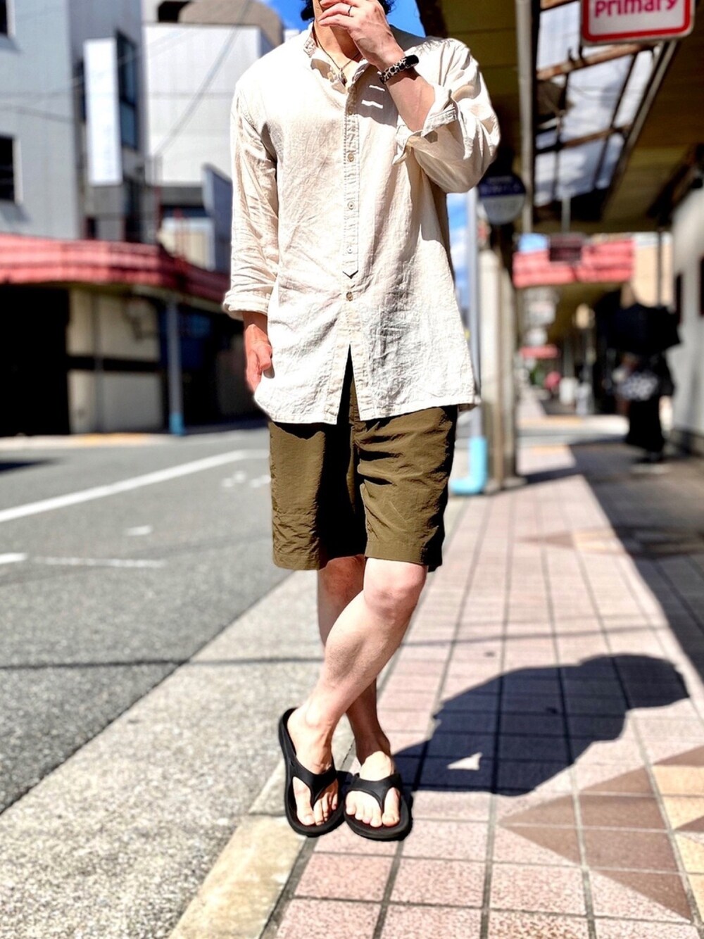 そろそろ涼しくなってきたので、おそらく今年最後のハーフパンツ🎵 【CLOTHING】 RAGEBLUEのリネン混ロングシャツ✨ SIZE:F + COTORICA.のハーフパンツ✨ SIZE:L + OOFOSのリカバリーサンダル✨ SIZE:28.0cm 182cm / 68kg 📸Instagram ▶︎ 【 ktaooo 】