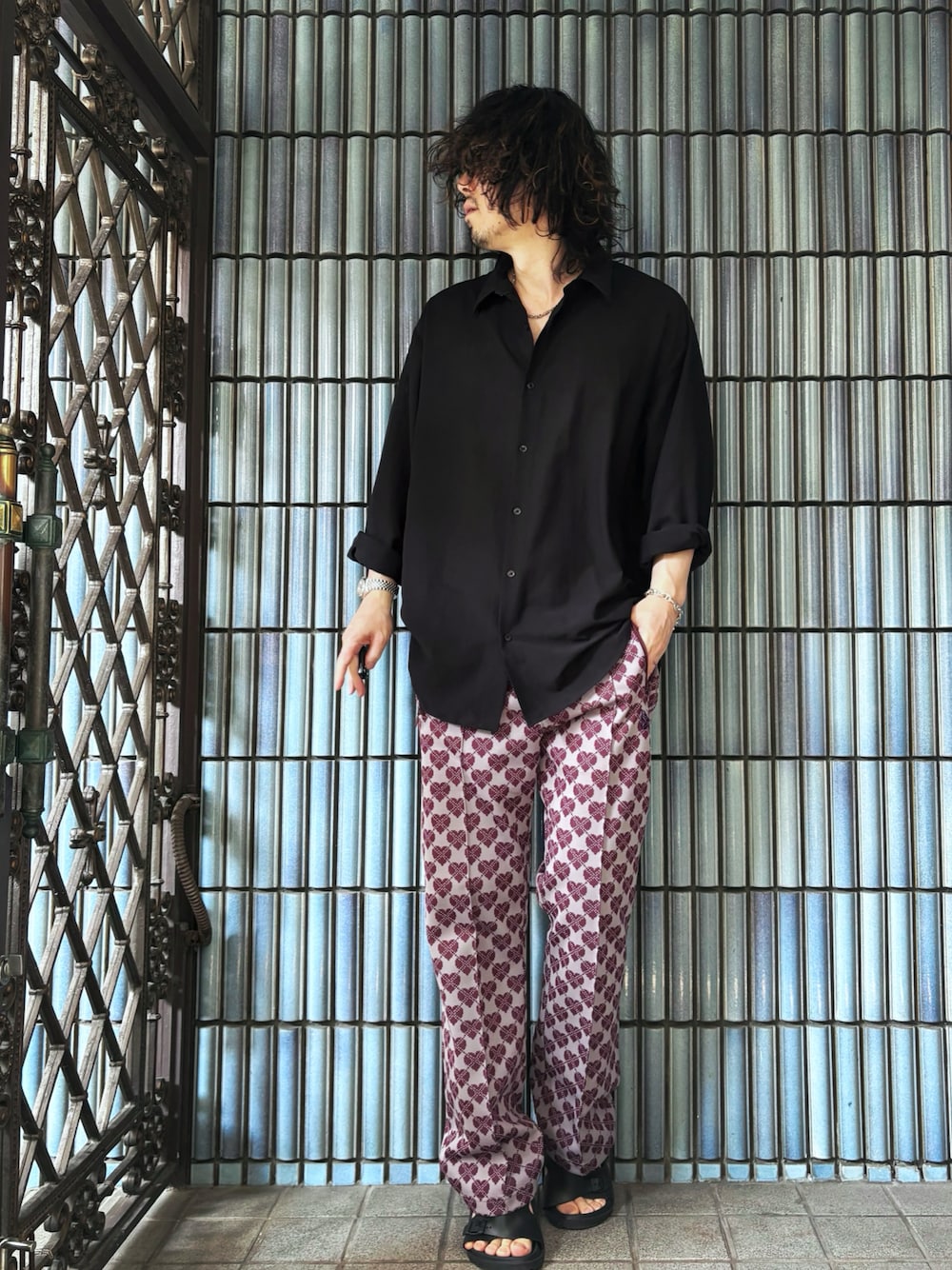 今日の大人コーデ🎵 ハート柄のパンツ履くだけでハッピー🩷 【CLOTHING】 ◼︎Shirt : GU - XL ◼︎Pants : NEEDLES - M ◼︎Shoes : SUBLIME - 42 182cm / 72kg 📸Instagram ▶︎ ktaooo (WEARのプロフィール画面から飛べます) インスタグラムではオススメの商品や趣味など、ファッション+αを発信しています。 こちらの方もフォローしていただけたら嬉しいです😃 ※PR等のご依頼はインスタグラムのDMまでお気軽にどうぞ✨