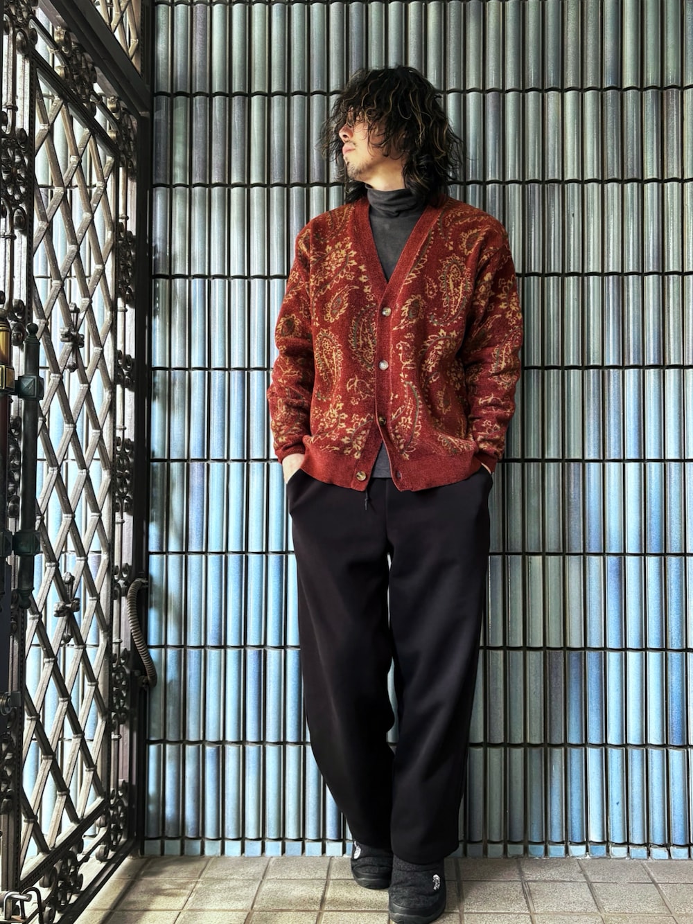 KEITA(ΦωΦ)のカーディガン/ボレロ「ペイズリー総柄 モール糸 ニットカーディガン/リラックスフィット」を使ったコーディネート