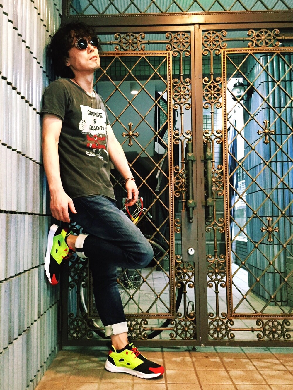 みなさん、お疲れ様です。 いつもいいね!やSAVE、フォローありがとうございます。 通知が来るたびにとても嬉しく思っています。 今日のテーマは『ハイテクスニーカー(ロック風)』です。 フューリーライトのシトロンカラーをベースにコーディネートしています。 このカラフルなスニーカーをどうやってロックに履きこなそうかと試行錯誤をしましたが最終的にはいつもの格好に履いてみました… 案外考えすぎないほうがロックかも(笑) このスニーカー、色は別としてとても軽くて履きやすいのでおすすめですよー。 それではロックンロールな1日を(ΦωΦ)