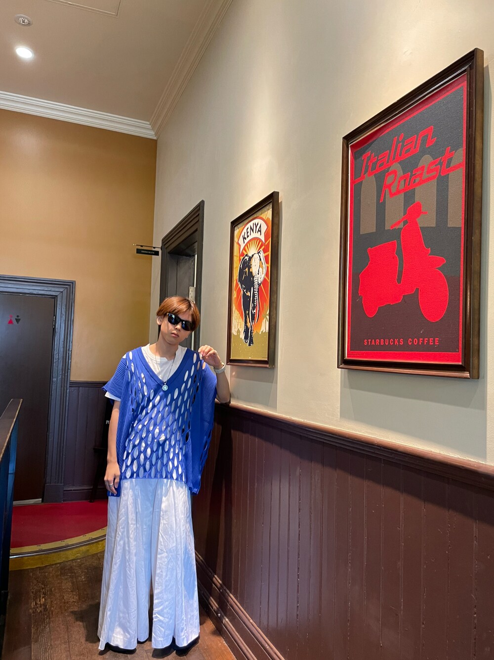 ご覧いただきありがとうございます。 神戸行った時に撮ってもらったこの1枚がめちゃくちゃ映えた!! 白のハカマパンツに白のトップス上から青のメッシュニットを合わせてみました。白と青そしてサングラス🕶という夏らしいコーデに仕上がってると思います、、、、 フォローお願いしますー!!