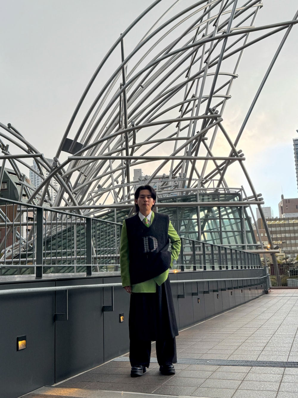 クラッシックな雰囲気も出したかったのでテーラードジャケットを使ったコーデ!真っ黒じゃ面白くないし、ジャケット緑やと派手すぎると思ったからネクタイとジャケットで差し色出しながらDAIRIKU のベスト上からきて下半身とのバランス取ってみた。 ネクタイ Versace シャツ diesel 重ね履きパンツ used