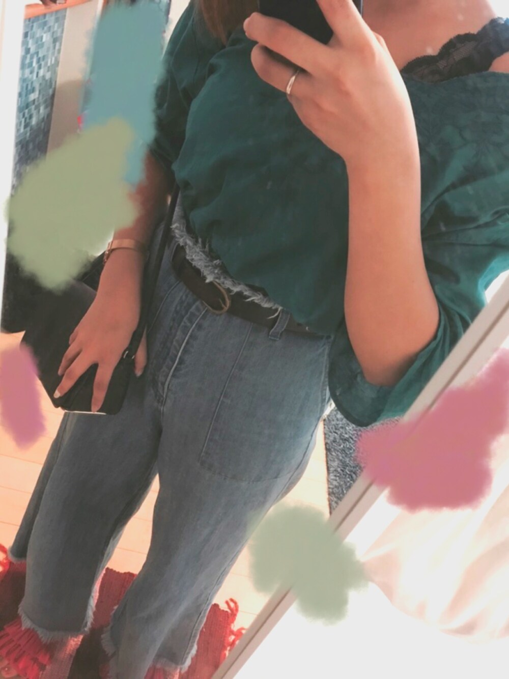 くららのデニムパンツ「ロープベルト付きハイウエストフリンジパンツ 758562 」を使ったコーディネート