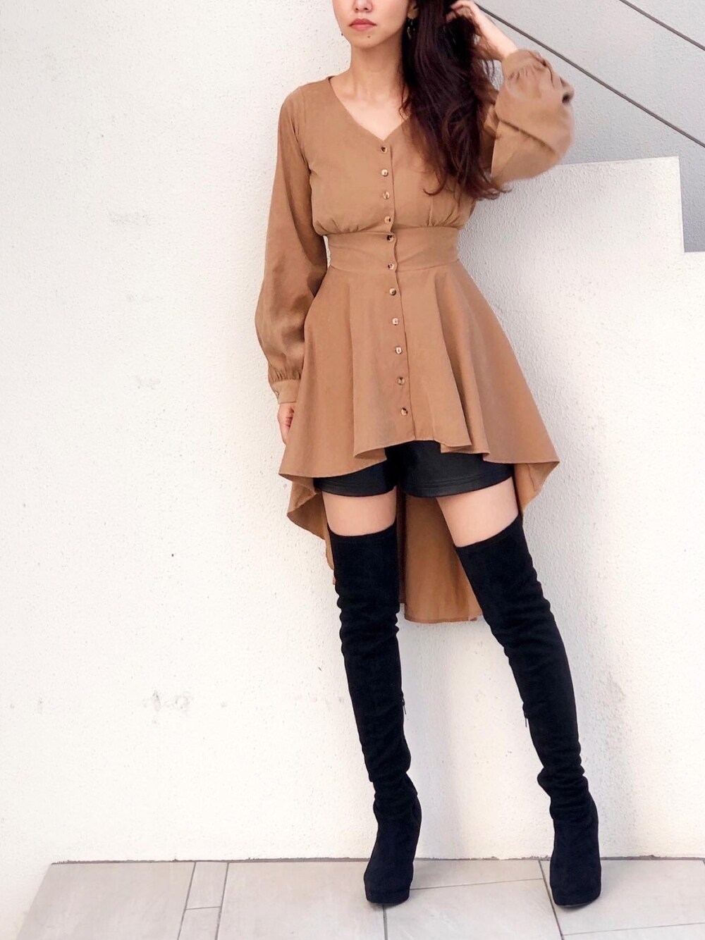 最近寒くなってきたから本格的に長袖のワンピースの季節という事でバックロングシャツワンピース×合皮タックショートパンツのコーデ❤︎ バックリボンと揺れ感が可愛いから、レザーのボトムと合わせて✨ 足元はめちゃくちゃ美脚に見えるニーハイで秋らしい装い🍁 #delylenoir#デイライルノアール #delyle#デイライル#tokyo#japan #instagood#fashion#ootd #code#コーデ#ファッション #ブーツ#ニーハイブーツ #ロングブーツ#ニーハイ #ショートパンツ#ショーパン #レザー#leather#black#ブラック #ブラウン#brown #秋コーデ#2020aw #autumnfashion#autumn #iqon#ponte_fashion