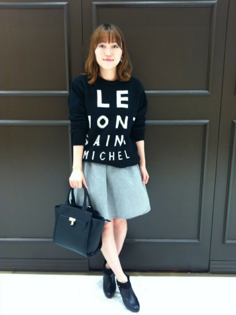 BAILA掲載コーディネートです(*^_^*) パリ発のブランド、ル・モンサンミッシェルのニットとラップスカートを合わせたとてもオシャレなコーデです!! シンプルでレトロなデザインが、大人な雰囲気でとても素敵なアイテムです♪♪ スカートはリバーシブルの巻きスカートなので、コーディネートに合わせてお使い頂けるオススメアイテムです♪