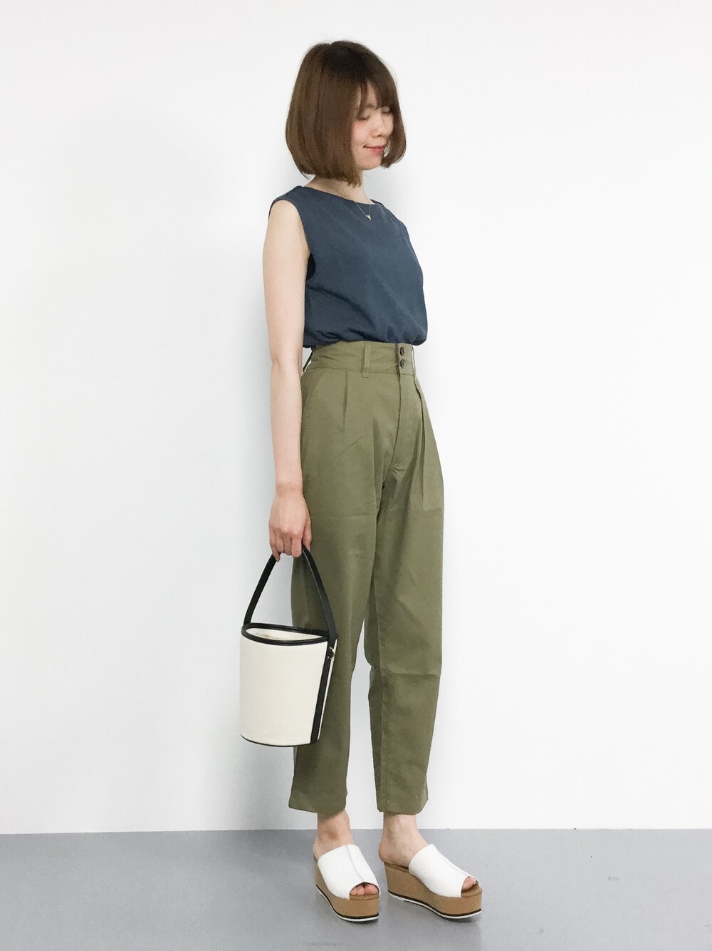 miyaseのTシャツ/カットソー「UGMM ボートネック ノースリーブ カットソー」を使ったコーディネート