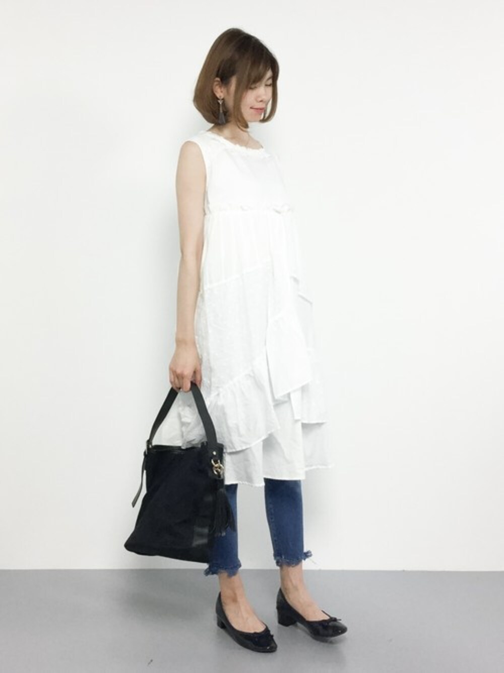 miyaseのワンピース「TORI-TO / レースレイヤー ノースリーブ ワンピース」を使ったコーディネート