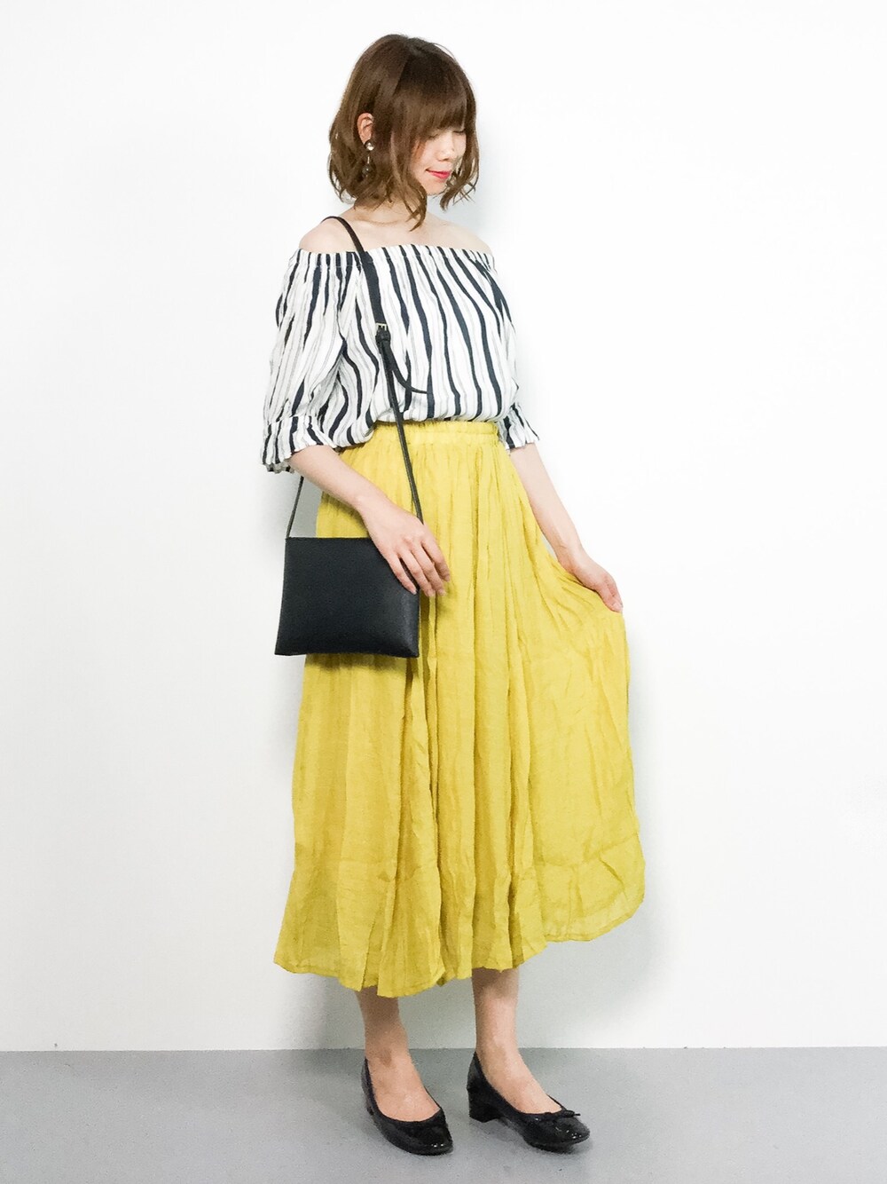 miyaseのシャツ/ブラウス「Rヨウリュウマルチストライプオフショル」を使ったコーディネート