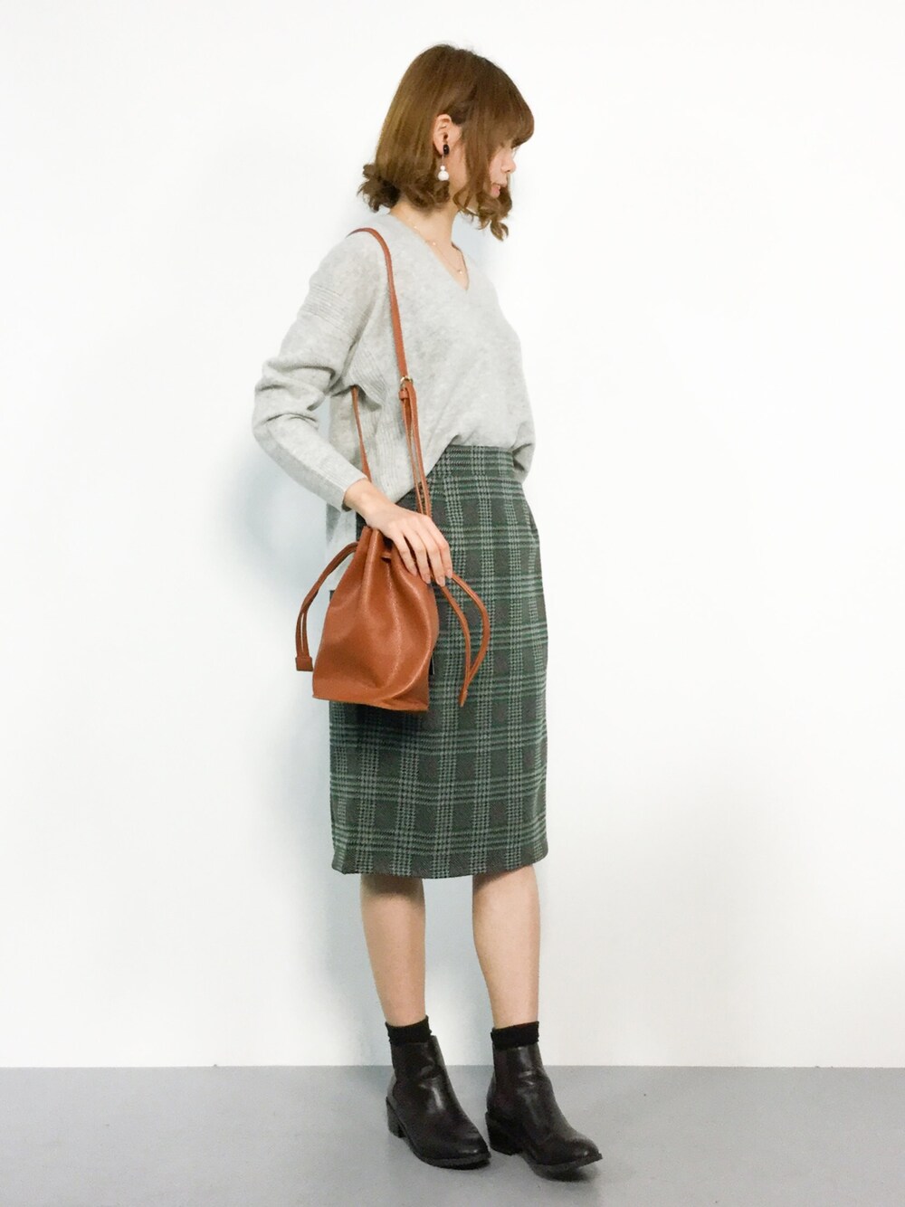 miyaseのニット/セーター「【手洗いできる・『LEE』11月号掲載】ラムウールVネックニット (オリーブ/ライトブルー⇒ WEB限定カラー)」を使ったコーディネート