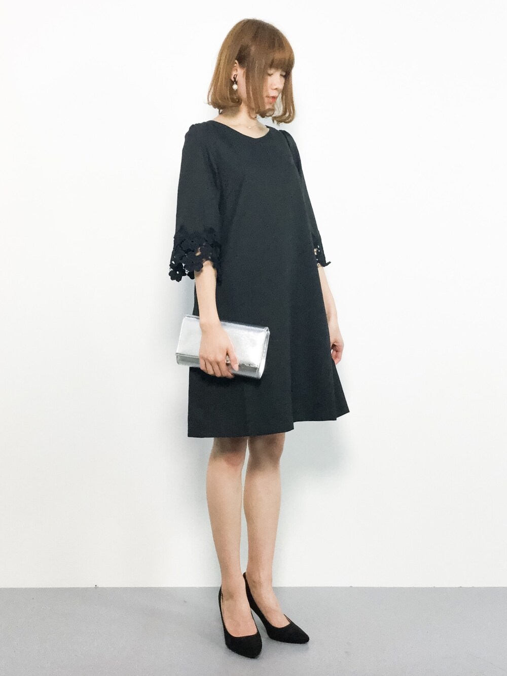 miyaseのドレス「七分袖&ひざ丈 ワンピースドレス プリーツ 大きいサイズ 結婚式 フォーマル オケージョンドレス お呼ばれ 二次会 成人式 同窓会 謝恩会 20代 30代」を使ったコーディネート
