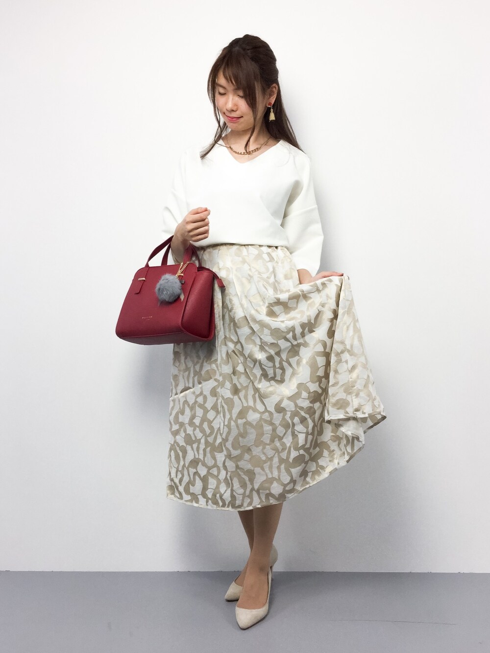 アクセントになるようなアイテムを合わせて大人きれいめなスタイルに♪